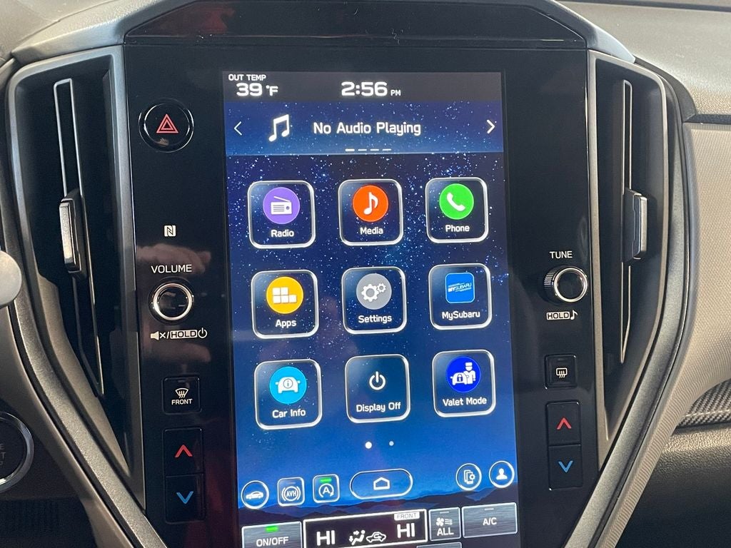 - Radio: Subaru 11.6" Multimedia Plus System -inc: AM/FM stereo, HD Radio, multi-touch gesture high resolution display screen, voice activated controls, Bluetooth® audio streaming and hands-free phone connectivity, Bluetooth® hands-free SMS text messaging connectivity, iPod control capability, smartphone integration: wired and wireless Android Auto w/full screen view and wireless Apple CarPlay w/full screen view, USB and Over The Air (OTA) audio system update, steering wheel audio system and Bluetooth® control switches, 6 speakers (2 dash panel tweeter, 2 front door and 2 rear door), illuminated 3.5mm auxiliary input jack, illuminated front USB A and C input/charge ports, connected services operation indicator, SOS emergency assistance: red SOS button and enhanced roadside assistance: blue i-button