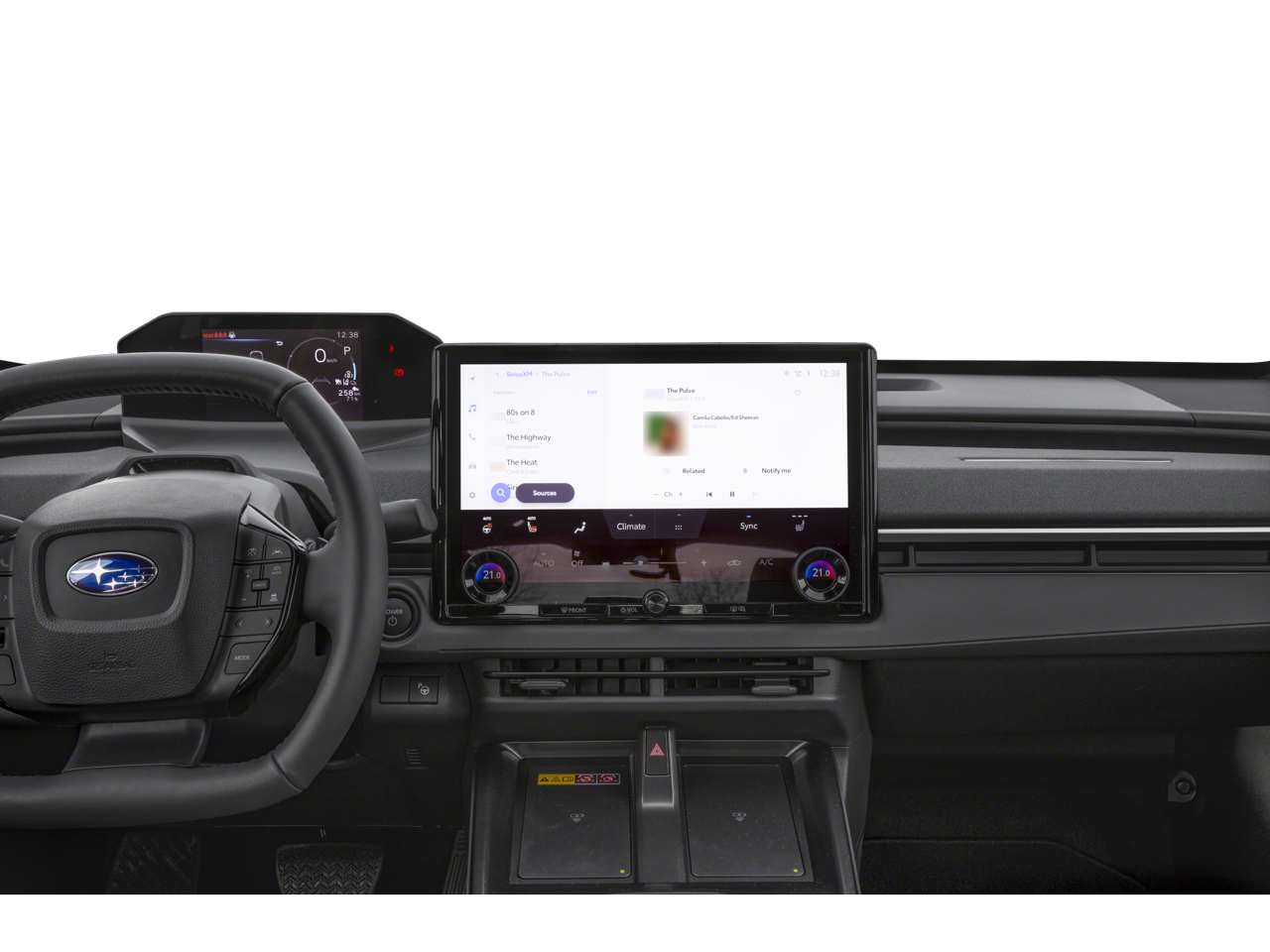 - Radio: Subaru 14" Multimedia System -inc: AM/FM stereo HD radio, multi-touch gesture high resolution display screen, cloud navigation system (navigation subscription required), Bluetooth® audio streaming and hands-free phone connectivity (refer to subaru.com for cell phone compatibility), Bluetooth® hands-free SMS text messaging connectivity (refer to subaru.com for cell phone compatibility), iPod control capability, SiriusXM All Access radio (4 months free trial included/subscription required after), smartphone integration: Android Auto and Apple Carplay w/full screen view and wireless connection, integrated streaming (30 days trial included/subscription required after), assistant w/dual-zone voice control system w/driver and passenger headliner microphone, steering wheel talk switch and audio system, basic function operation, media operation and audio tune operation, USB and Over The Air (OTA) audio system update, USB/Map Over The Air (MOTA) navigation system update, steering wheel control switches for audio and Bluetooth®, harman/kardon speaker system w/11 speakers, subwoofer and harman/kardon 576 watt equivalent maximum amplifier, dual Qi (15W each), wireless charging pad, illuminated driver USB C input/charge port and illuminated passenger USB C charge port