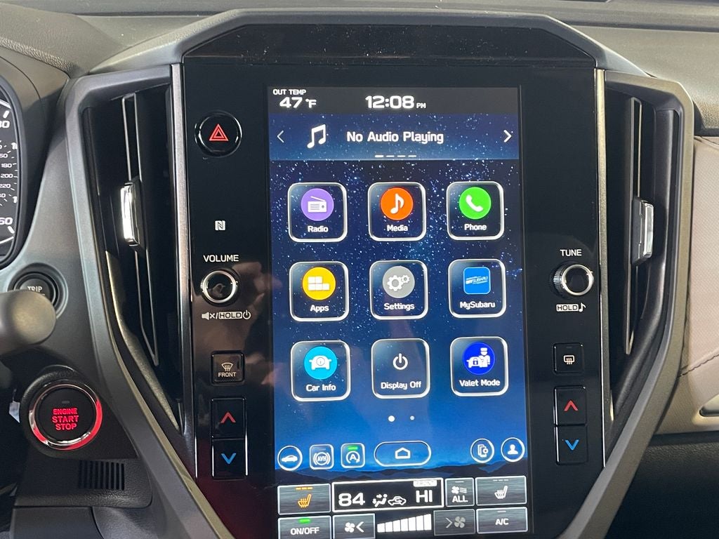 - Radio: Subaru 11.6" Multimedia Plus System -inc: valet mode, integrated center information display, AM/FM stereo HD Radio, multi-touch gesture high resolution display screen, voice activated controls, Bluetooth® audio streaming and hands-free phone connectivity w/SMS text messaging (refer to Subaru.com for cellphone compatibility), iPod control capability, smartphone integration: Android Auto and Apple CarPlay w/full screen view and wireless connection, SiriusXM satellite radio w/360L (free 4-month trial subscription included), USB and Over The Air (OTA) audio system update, steering wheel controls, 6 speakers, 3.5mm auxiliary input jack and roof mounted audio and satellite antenna