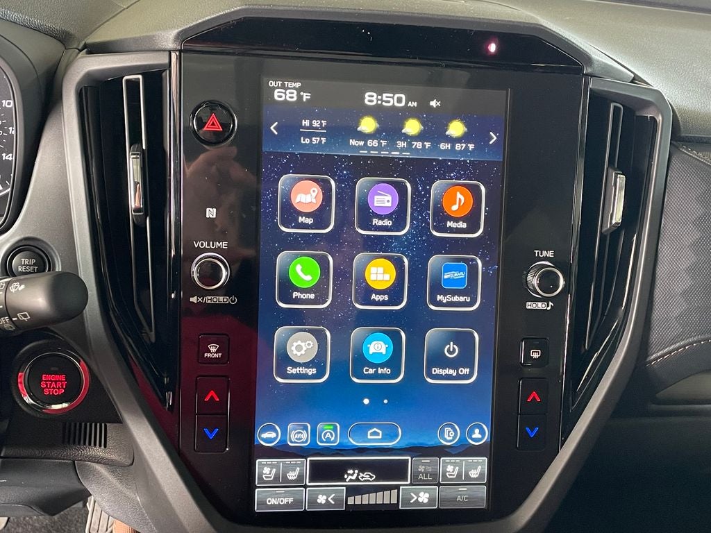 - Radio: Subaru 11.6" Multimedia Navigation System -inc: valet mode, integrated center information display, AM/FM stereo HD Radio, multi-touch gesture high resolution display screen, voice activated controls, voice activated navigation, Bluetooth® audio streaming and hands-free phone connectivity w/SMS text messaging (refer to Subaru.com for cellphone compatibility), TomTom navigation software w/what3words, iPod control capability, smartphone integration: Android Auto and Apple CarPlay w/full screen view and wireless connection, SiriusXM satellite radio w/360L (free 4-month trial subscription included), USB and Over The Air (OTA) audio system update, USB and Map Over The Air (MOTA) TomTom navigation system update (3 years free map updates), steering wheel controls, harman/Kardon speaker system w/11 speakers and 576 watt equivalent maximum output amplifier, 3.5mm auxiliary input jack and roof mounted audio, satellite antenna and SiriusXM Travel Link (4 months free trial included/subscription required after)