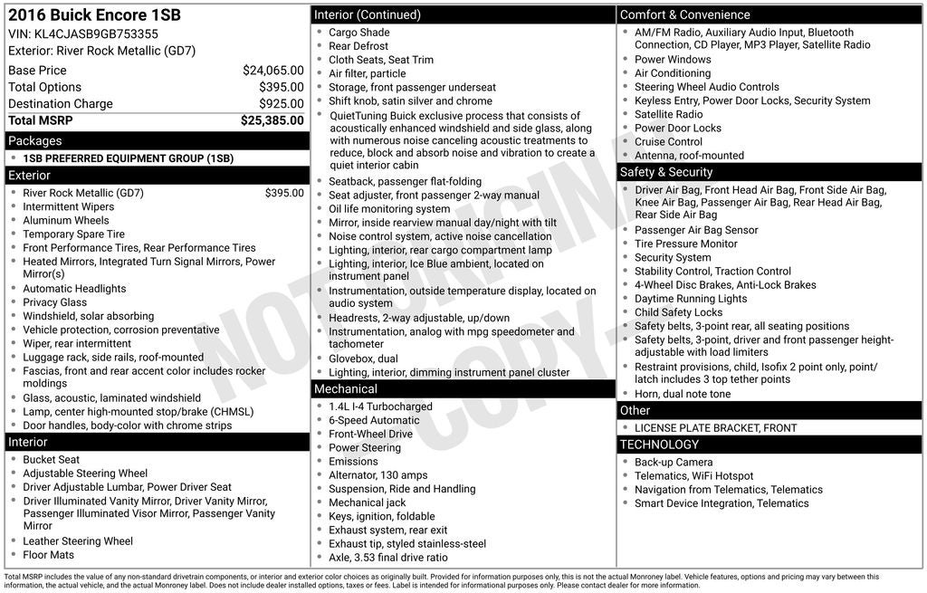 - Vehicle Name: Buick Encore