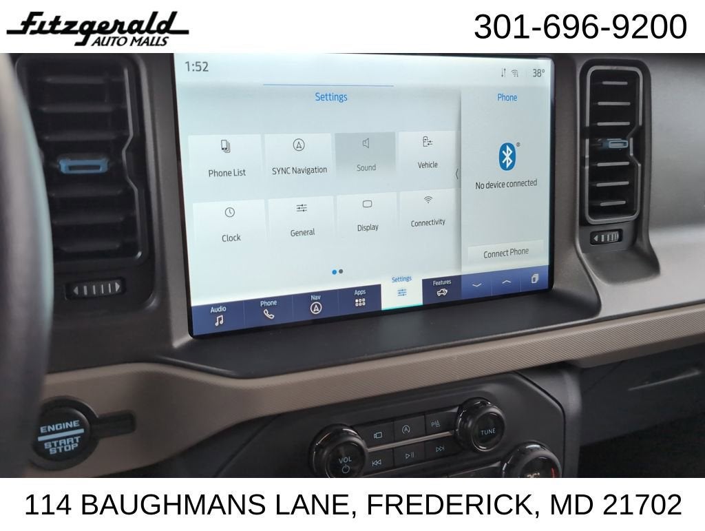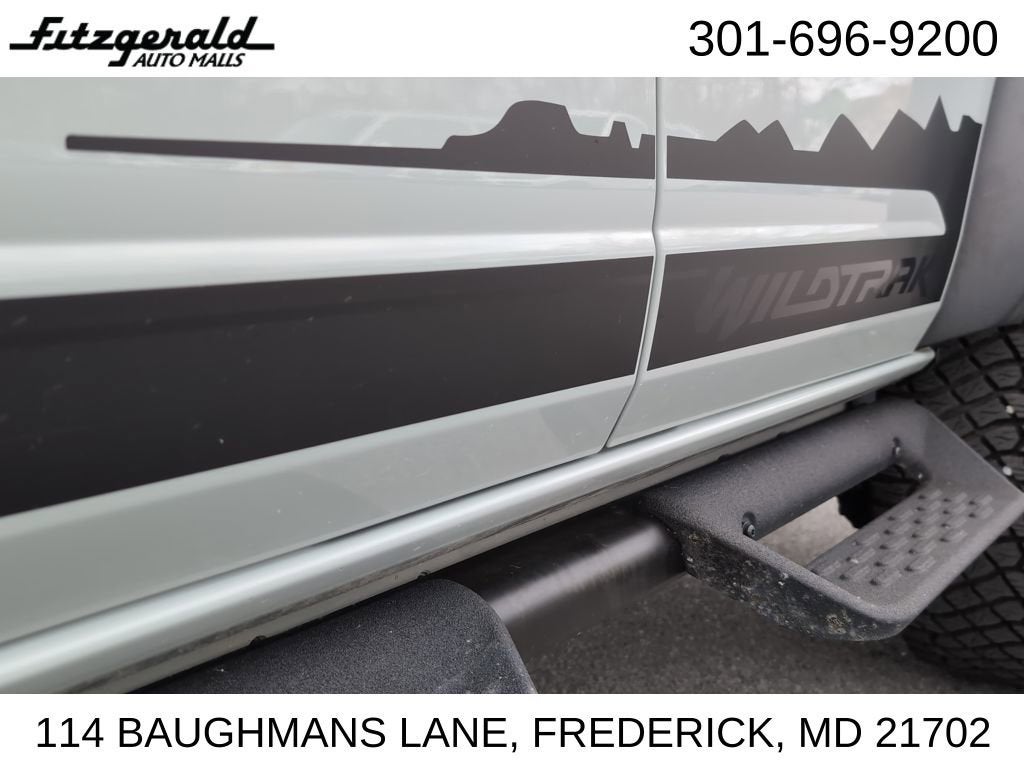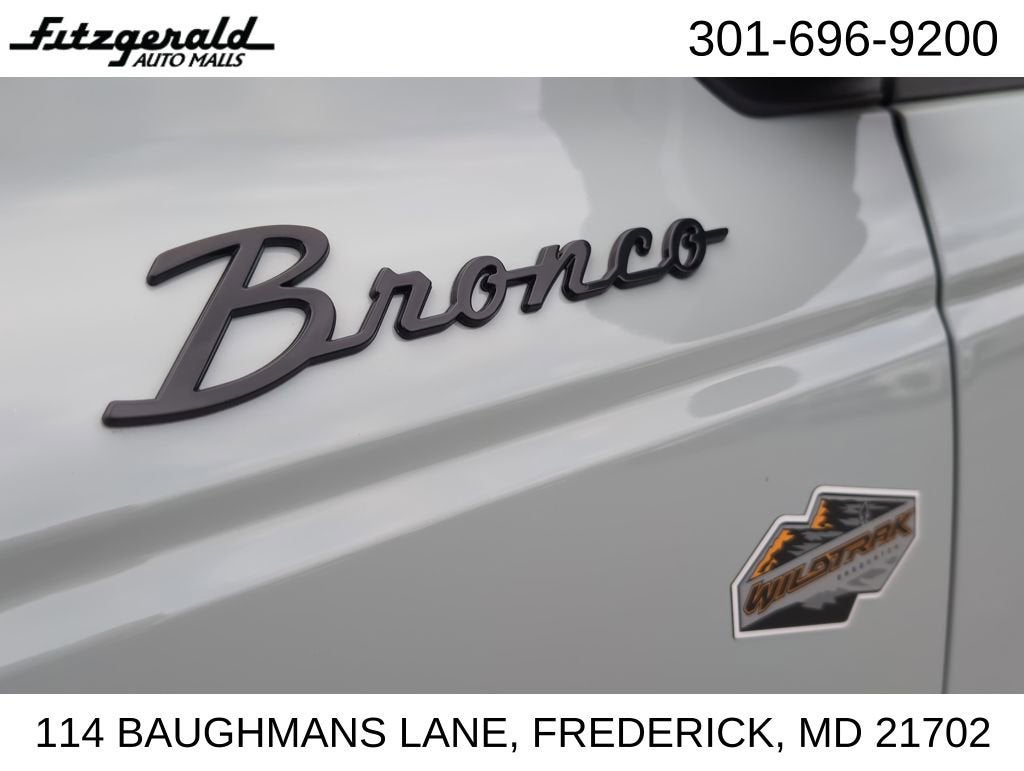 2024 Cactus Gray Ford Bronco 10-Speed Automatic 2.7L EcoBoost V6 Wildtrak You will love our NO HAGGLE, NO HASSLE PRICING here at Fitzgerald Auto Mall. Ask us about our BUYER PROTECTION PLAN, LOANER CAR PROGRAMS, AND FREE Vehicle History Report. Can not find what you want?? NO PROBLEM! We have over 1,000 Pre-Owned vehicles available at WWW.FITZMALL.COM. You can also visit us in person at 114 Baughmans Lane Frederick MD, 21702 or Call Us @240-629-7301.