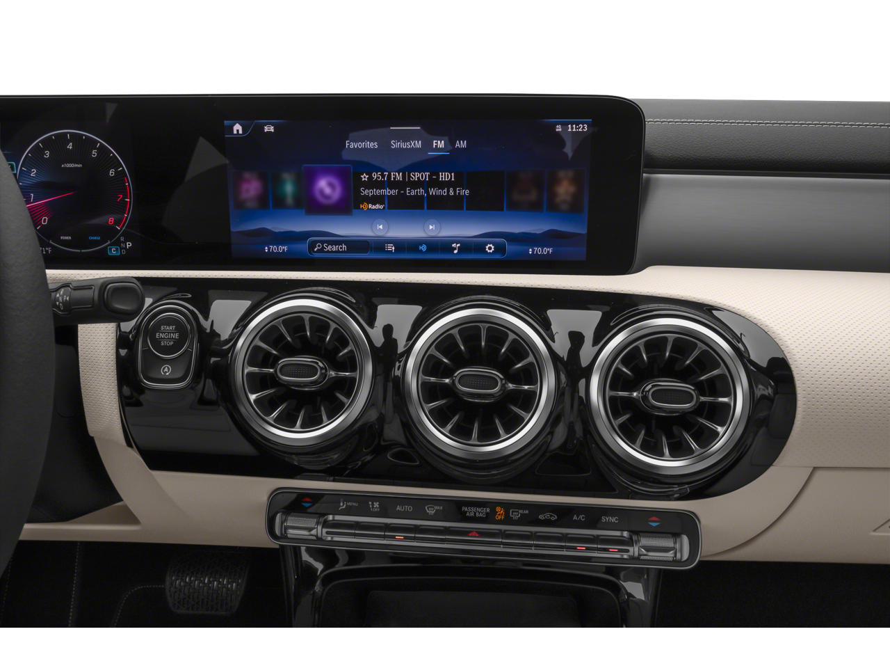 - Radio: MBUX Multimedia System -inc: 10.25" touchscreen multimedia display, 5 USB-C ports, smartphone integration, voice control including natural language understanding and keyword activation ("Hey Mercedes") and Bluetooth® connectivity