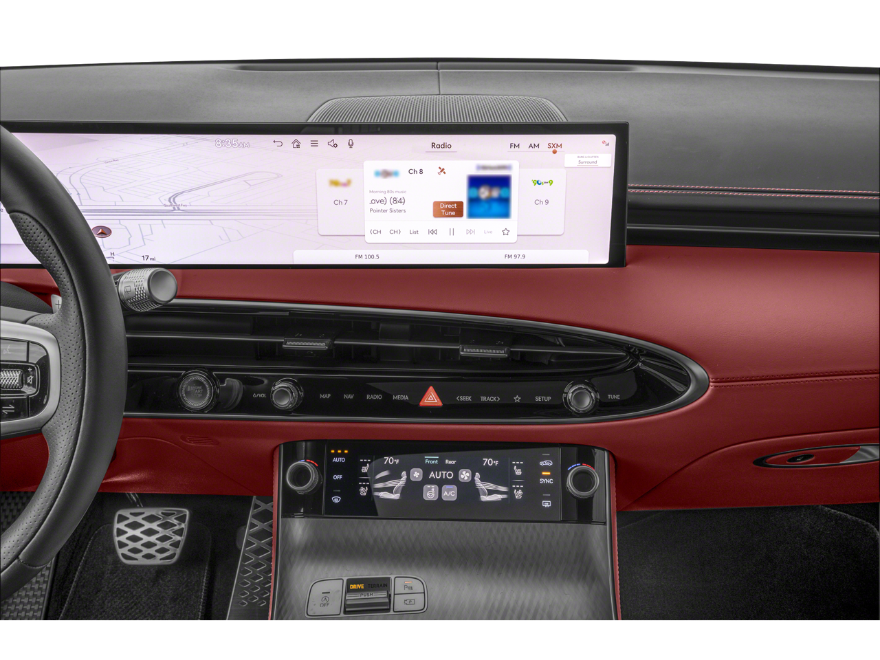 - Radio: 14.5" Navigation System w/AM/FM/HD Radio -inc: SiriusXM radio w/90-day trial subscription (N/A in AK or HI), wireless Android Auto and Apple CarPlay, cloud connected platform, Genesis Connected Services, dynamic voice recognition, Bluetooth® hands-free phone & audio streaming system, Bang & Olufsen sound system w/16 speakers, WiFi hotspot, internal amplifier and USB port
